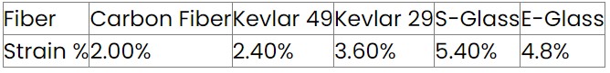 在壓縮方面,凱夫拉纖維比碳纖維或玻璃纖維弱得多。重要的是,當(dāng)受到側(cè)向打擊時,凱夫拉纖維更容易破裂,從而導(dǎo)致纖維產(chǎn)生壓縮應(yīng)變。這并不是說不應(yīng)使用凱夫拉纖維,而是說應(yīng)采用足以滿足結(jié)構(gòu)可能出現(xiàn)的需求的層結(jié)構(gòu)進行設(shè)計。