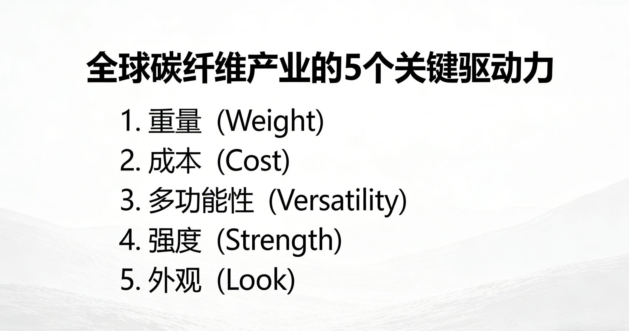 我認(rèn)為,從家具到電子產(chǎn)品,從服裝到體育用品,碳纖維注定將滲透到每一個(gè)產(chǎn)品領(lǐng)域。以下是五大核心原因: